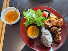 ランチで食べたカレーと唐揚げ? 美味しかった😋 2月もあと少しで終わり😆 皆様のご来店を心よりお待ちしております🌈 朝倉 しおり