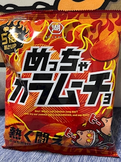 ども☆ 今日のブログはこちらw とある場所でGETしたこちら💁♀️ カラムーチョは好きなので つい気になっちゃった(● ˃̶͈̀ロ˂̶͈́)੭ꠥ⁾⁾ 辛さ5倍っていかほどかと思ったけど… むーーーーーりーーーーー‼️ めっちゃ辛い🔥💦🥵 舌痛い😭💦 2枚でギブアップ💦💦 どんだけお茶飲んでも意味なくて アイスのガリガリくんがあったので ずっと舐めて冷やして誤魔化してた💦 後にも先にもガリガリくんをガリガリせずに食べたのは人生初だなwww 辛いものは苦手だと自負してるのですが つい好きな物だとチャレンジしてみたかった… めっちゃ後悔😭w そして。。。 お店の激辛オバケのえまちゃんに試して欲しかったので食べかけだけど持ってったw やっぱりオバケやったw😱w 詳しく気になる方は えまちゃんの過去ブログを見てね♪ ではまた☆