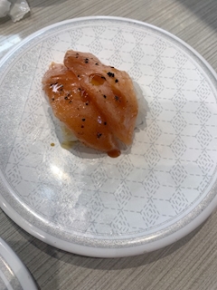あぶりなんとかサーモンを1皿頼んでみました シャリ半分とやらで 1皿2貫 ノーマルサイズの1個のシャリにネタが2個乗っていました A. ➖ そうだけどそうじゃなくね?って思ってしまいました はい 私も真面目にお仕事がんばります 本日も出勤です
