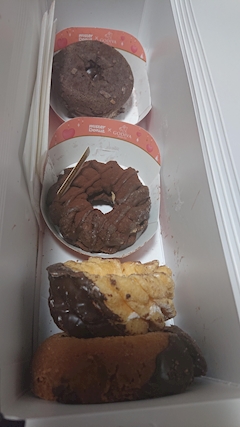 お疲れ様です🤗🍻 本日21時出勤です🏃🎵 お昼の仕事中に差し入れいただいた✨ ミスド😍🍩 これで一人分だって😋💓 お店の出勤前は時間なくて食べられなかったから 帰宅してからのお楽しみ😆💖 GODIVAのもあるし楽しみ🤤🎵 今夜もジュリアナ宜しくお願い致します🙇💓 楽しい時間を一緒に過ごしましょう✨ みお😺