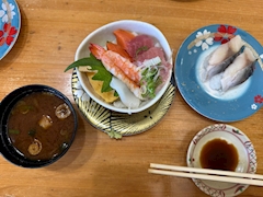 初出勤と昨日も挨拶に来て頂き ありがとうございます🙇♀️ 本日も出勤です🤗 皆様のご来店を心よりお待ちしております🌈 帰省した時に食べたお寿司🍣 美味しかった😋 朝倉 しおり
